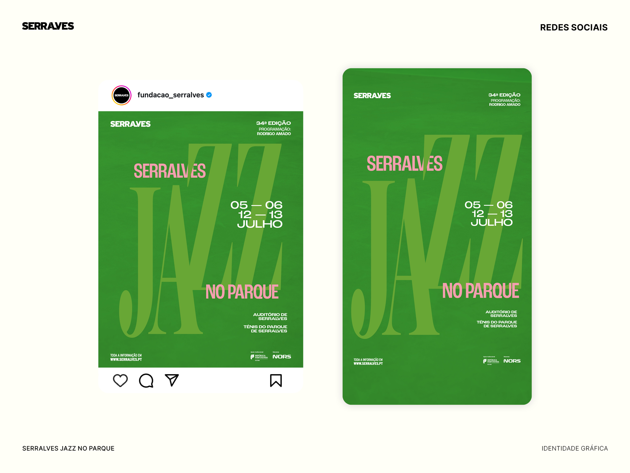 Through an ongoing collaboration with Fundação de Serralves, the challenge was to develop visual identities and communication systems for a wide range of large-scale cultural events, including Serralves em Festa, Festa do Outono, Jazz no Parque, Serralves em Luz and the Christmas Market. Each event presented distinct themes, audiences and spatial conditions, requiring a high level of adaptability while responding to the institution’s evolving communication needs.